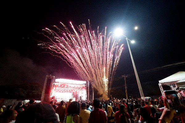Evento reuniu multidão na Avenida JK, com shows de artistas locais, espetáculo de fogos e clima de confraternização
