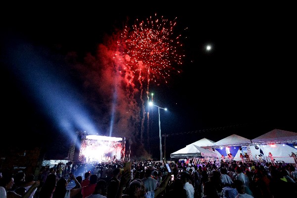 Evento reuniu multidão na Avenida JK, com shows de artistas locais, espetáculo de fogos e clima de confraternização
